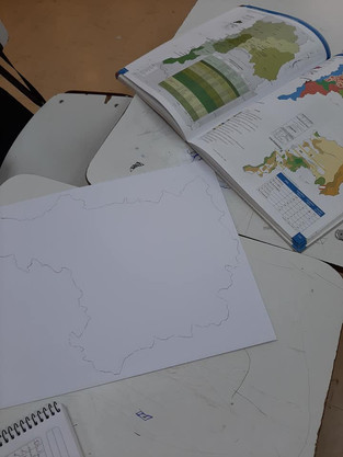 Este margen sera el cuadro en que trabajaras. Coloca el papel diamante sobre el dibujo del mapa, calca con el lápiz grafito.